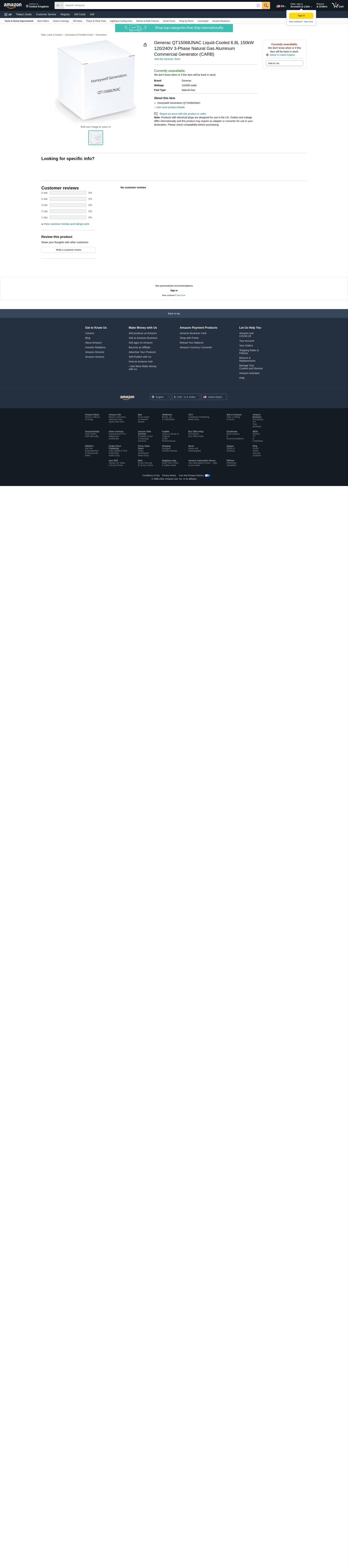 GENERAC QT15068JNAC Automatic Standby Generator Liquid-Cooled 150 kW 187.5 kVA Rating 120/240 Voltage 451.5 Amps 3 Phase 60 Hz Natural Gas Fuel Engine RPM 3600 Engine Size 6.8 Liter Length 116 In Height 55 In Width 37 In 1-1/4 Fuel NPT Pipe Connection Battery Requirements 12 Volts Battery Requirements Min Amp Hr 525 CCA Battery Requirements Group 24F Sound Level dBA 66 Installation Requires Local Permits For Gas Piping Concrete Foundation Electrical Inspection And Approval