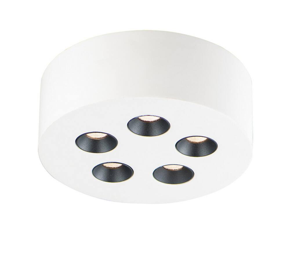 ET2 E25010-WT Peg Unique Paintable White Gypsum Round Flush Mount Ceiling Lighting, 5-Light 15 Total Watts, 3"H x 7"W, White