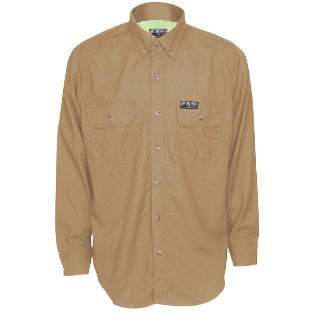MCR Safety Summit Breeze SBS1003X2 Flame Resistant 5.5oz Inherent Blend Shirt, Underarm/Back Vents, Men's Work Shirt, XX-Large, Tan