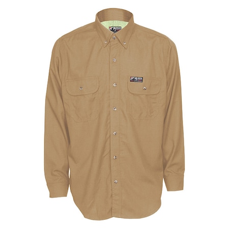 FLAME RESISTANT COLLARED SHIRT, 2 POCKETS, 5.5 OZ, TAN, SIZE XX LARGE, INHERENT BLEND