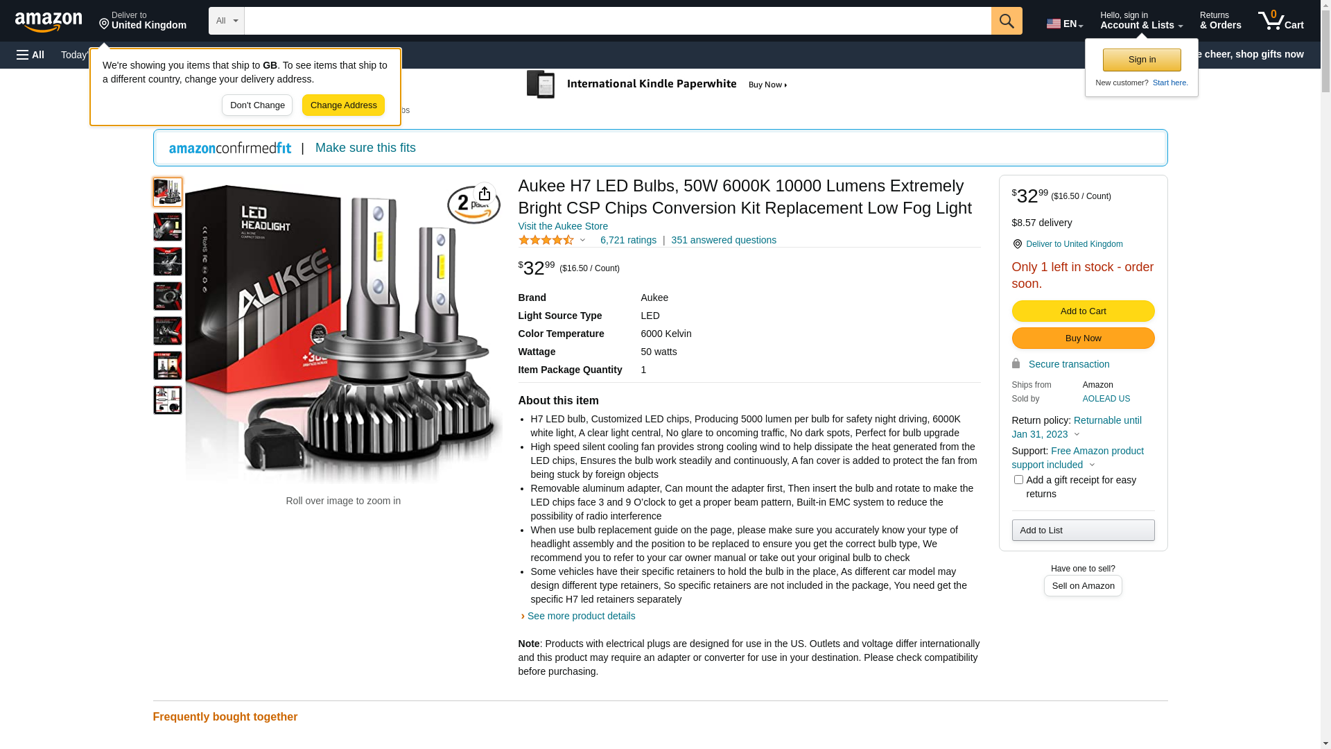 - H7 LED bulb, Customized LED chips, Producing 5000 lumen per bulb for safety night driving, 6000K white light, A clear light central, No glare to oncoming traffic, No dark spots, Perfect for halogen bulb upgrade