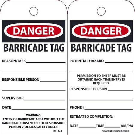 NMC Danger Barricade Tag, 6 x 3 inch, Polytag RPT172ST100. ✅NMC authorized distributor ✅. ☎ +1 (838) 222-2023 Mon-Fri 8:00 AM - 5:00 PM ET or order online 24/7