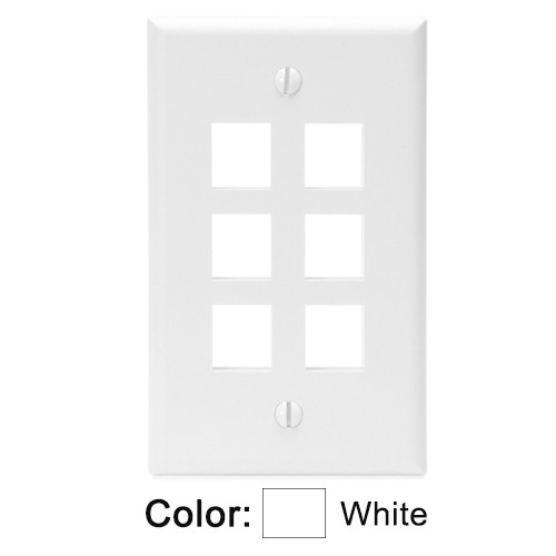 Leviton 41080-6WP - Single-Gang QuickPort Wallplate - 6-Port - White
