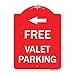 Free Valet Parking with Left Arrow, Red & White Aluminum Architectural Sign