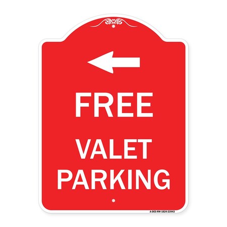 SignMission Designer Series Sign - Free Valet Parking with Left Arrow | Red & White 18" X 24" Heavy-Gauge Aluminum Architectural Sign | Protect Your Business & Municipality | Made in The USA