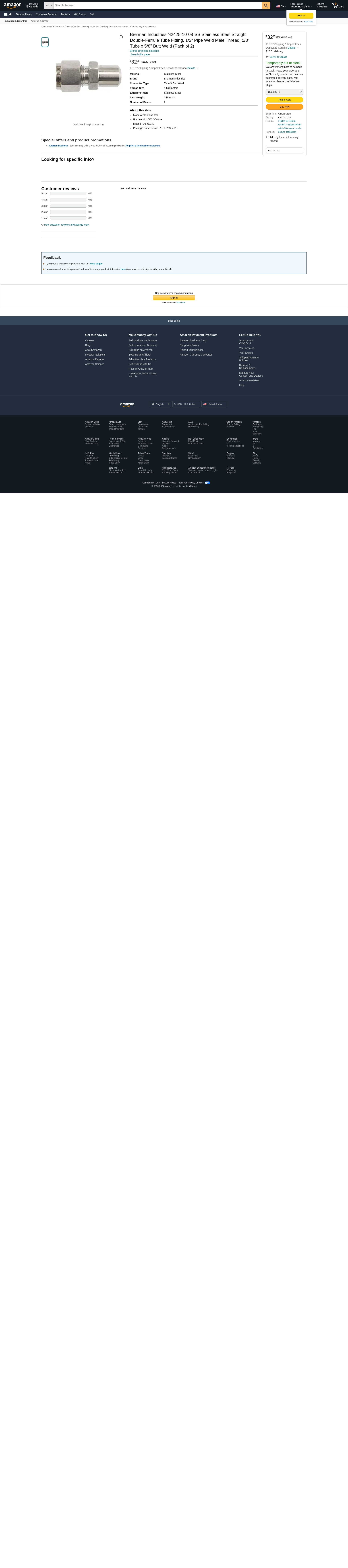 Brennan Industries N2425-10-08-SS Stainless Steel Straight Double-Ferrule Tube Fitting, 1/2" Pipe Weld Male Thread, 5/8" Tube x 5/8" Butt Weld (Pack of 2)