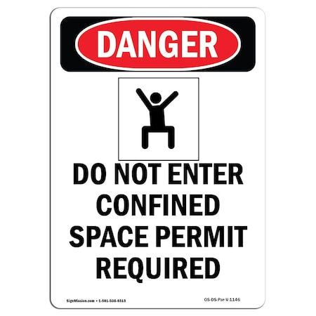 OSHA Danger Sign, Do Not Enter Confined, 18in X 12in Decal