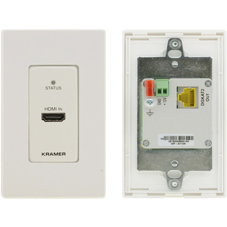The Kramer <b>WP-871XR</b> is a high-performance, long-reach DGKat™ 2.0 wall-plate transmitter for 4K@60Hz (4:4:4) HDR HDMI and HDCP 2.2 signals and power over twisted pair. It converts the HDMI input signal into a DGKat™ 2.0 signal and transmits it to a compatible receiver like the KR-PT-872XR (sold separately). WP-871xr extends the signal to up to 60m (200ft) at 4K@60Hz (4:4:4) resolution and up to 70m (230ft) at 4K@30Hz (4:4:4) 24bpp resolution over Kramer shielded cables. This wall-plate is powered through PoC (Power over Copper) over the twisted pair cable.</p><p><b>Perfect for:</b><br />Wall or Podium-mounted long-distance AV signal extension for classrooms<br />Table-mounted long-distance AV signal extension for large room connectivity<br />Wall-plate AV extension in meeting rooms, boardrooms, hotels and corporate facilities</p>