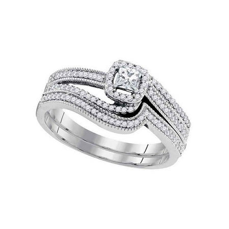<ul> <li>10kt White Gold</li> <li>3/8 Carats total weight --- 1/6 carat center solitaire</li> <li>Widest point width: 7 mm (.28 inches )<br />; Width of shank: 2 mm</li> <li>4.05 grams (approximately)</li> <li>Ring size selectable. All diamonds are natural and conflict-free in origin.</li> </ul>