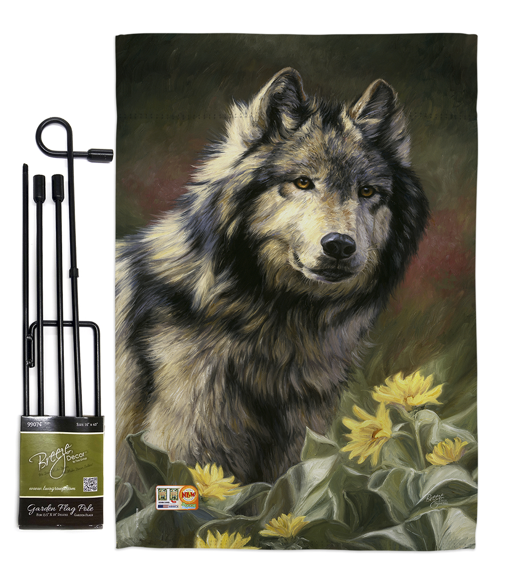 Breeze Decor BD-WL-GS-110083-IP-BO-D-US16-AL 13 x 18.5 in. Wild Spirit Nature Wildlife Vertical Double Sided Mini Garden Flag Set with Banner Pole