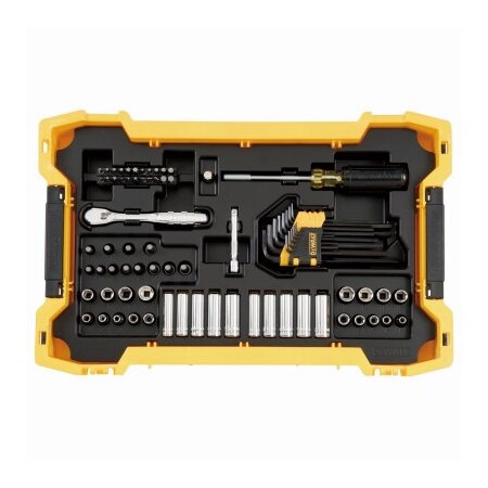 Highlights: Number Of Pieces: 131 Stay organized on the jobsite with two included Tough System 2.0 shallow tool trays, two moulded inserts and two compatible lids High maneuverability in confined spaces 72-tooth count ratchet provides a 5 deg arc swing Comfortable grip with anti-slip driver handle Corrosion-resistant,