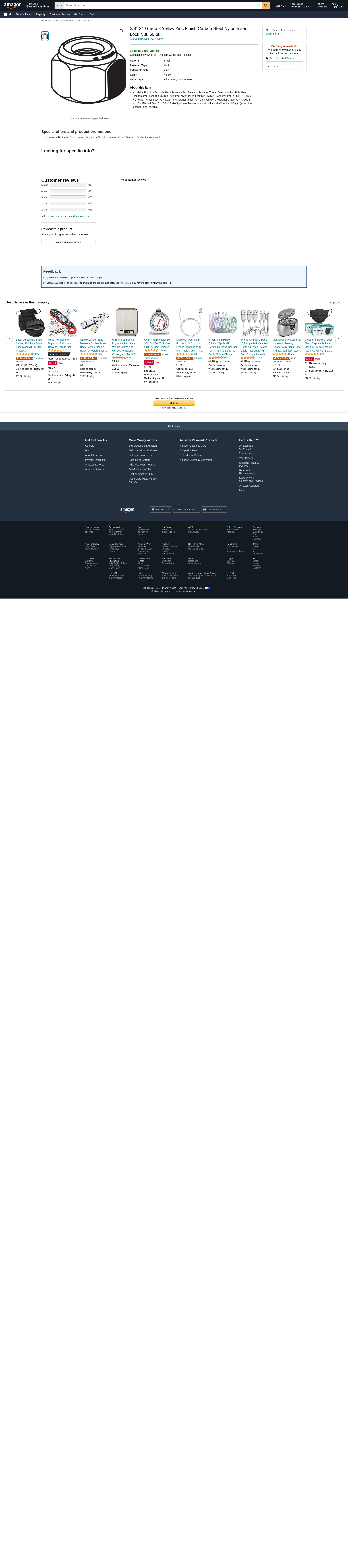 | Feature | <b>Price For:</b> Each <b>Basic Material</b>: Steel <b>Fastener Thread Direction</b>: Right Hand <b>Item</b>: Lock Nut <b>Nut Style</b>: Nylon Insert Lock Nut <b>Nut Standards</b>: ASME B18.16.6 <b>Width Across Flats</b>: 9/16" <b>Fastener Finish</b>: Zinc Yellow <b>Material Grade</b>: Grade 8 <b>Dia./Thread Size</b>: 3/8"-24 <b>System of Measurement</b>: Inch <b>Country of Origin (subject to change)</b>: Multiple |