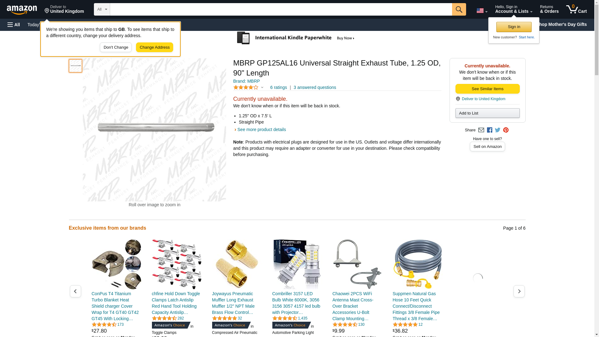 | goturbo.net | MBRPGP125AL16 | 1 | -2 | 1 | 1 @ $49.99 |