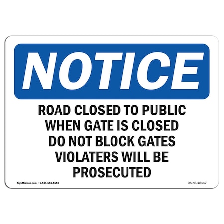 OSHA Notice Sign, Road Closed To Public When Gate Is Closed, 14in X 10in Aluminum