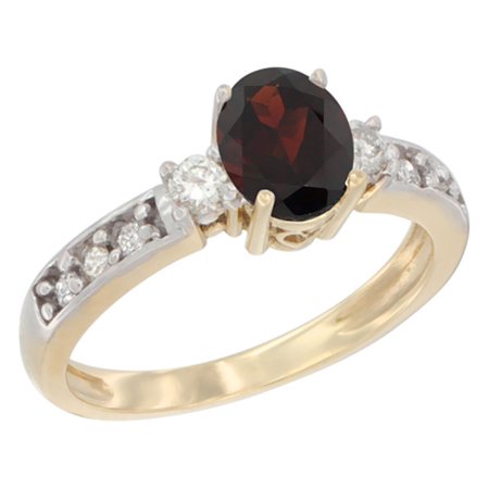 10k Yellow Gold Natural Garnet Ring Oval 7x5 mm Diamond Accent, sizes 5 - 10