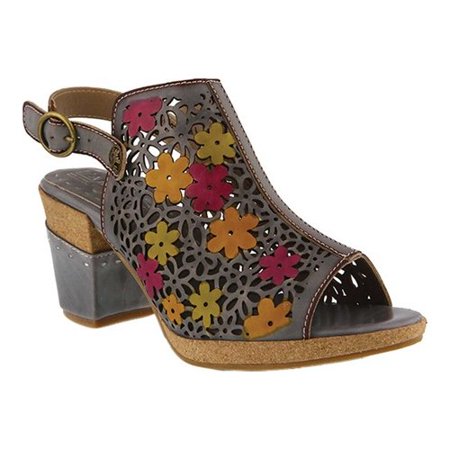 L'ARTISTE Women's by Spring Step, Deonna Mid Heel Sandals Gray 3.9 M