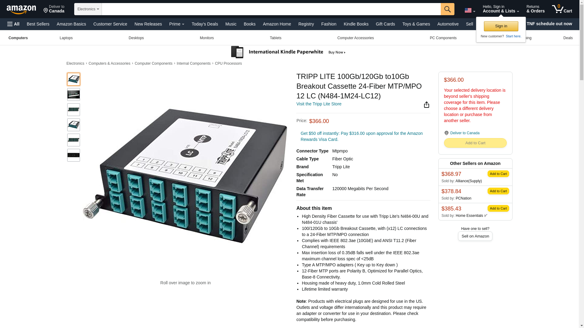 | Feature | "Tripp Lite's N484-1M24-LC12 is a High Density 100/120Gb to 10Gb Breakout Cassette with (x12) LC" |
