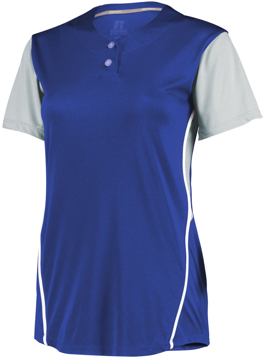 Russell 7R6X2X.R9B.XL Ladies Performance Two-Button Color Block Jersey, Royal & Baseball Gray - Extra Large
