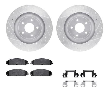 Dynamic Friction Company Front Brake Rotors Drilled and Slotted Silver with Heavy Duty Brake Pads includes Hardware - 7212-40075