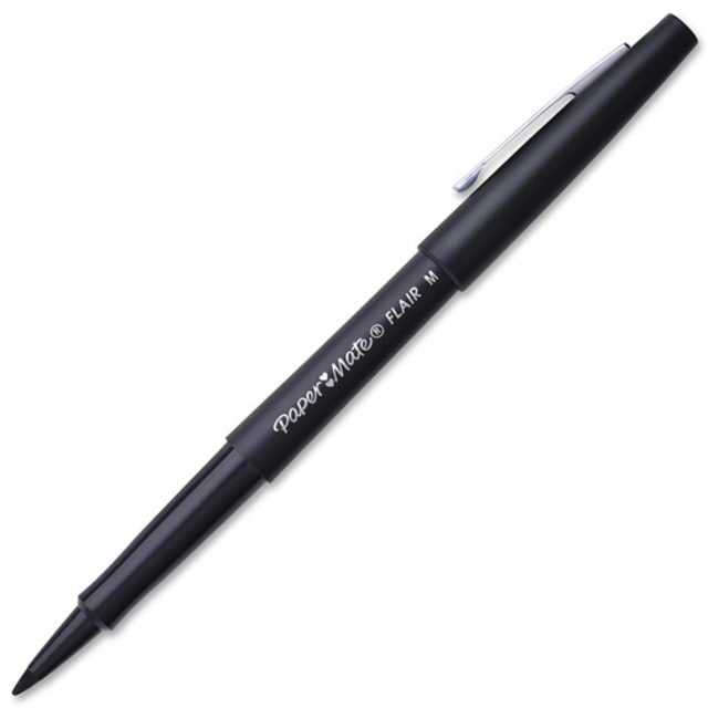 Paper Mate Point Guard Flair Bullet Point Pens will make you love writing. Each of the pens features Point Guard to prevent the tip from fraying, so you always produce neat lines even after repeated use. Express yourself with flair. Colorful, quick-drying, water-based, smear-resistant ink always leaves a great impression that won't bleed through paper. Every stroke produces a bold, clean line, making Flair perfect for drawing, editing documents and checking papers. Point Size: 1.4 mm; Point Type: Medium; Ink Color(s): Black; Pen Type: Porous Point.
