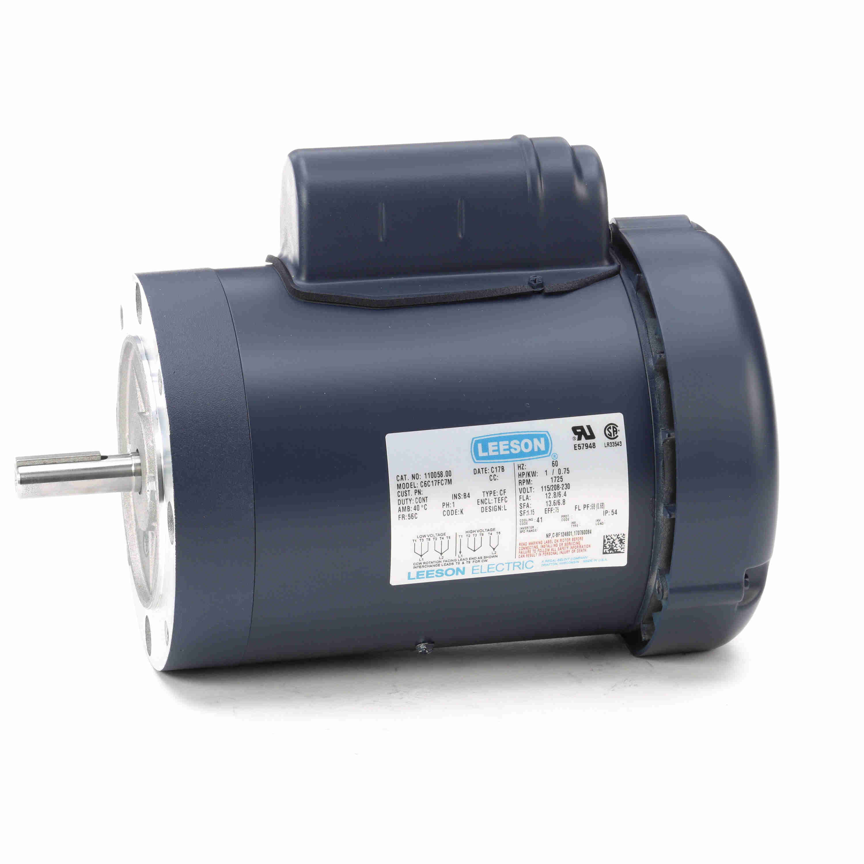 Leeson Electric, 110058.00, 1HP, 1725RPM, 1PH, 115V;208V;230V, 56 C Frame, C-Face Flange, Footless, TEFC, General Purpose Motor