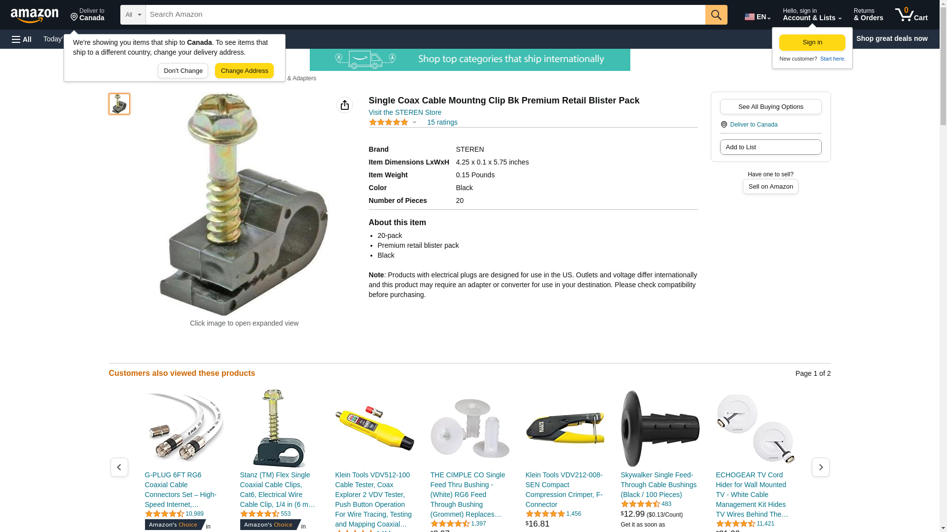 | Feature | Steren BL-240-956BK-20 Coaxial Cable Mounting Clip - Cable Clip - Black - 20 Pack |