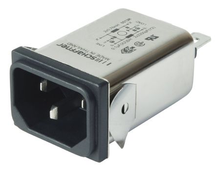 Schaffner - FN9222S-3-06 - IEC Inlet, 1-Phase, 3A PEM, Fast-on, Snap-In, NO Resistor, FN 9222 Series - RS