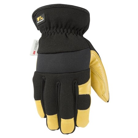 Mens Cowhide Leather Saddletan Grain Winter Work Gloves, Black & Yellow - Extra Large
