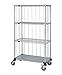 Quantum 3 Sided Stem Caster Wire Shelf Cart 74" H Post, Stem Caster Units with 3 Wire Shelves, 1 Solid Shelf, Rods and Tabs 18" W X 36" L X 80" H