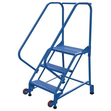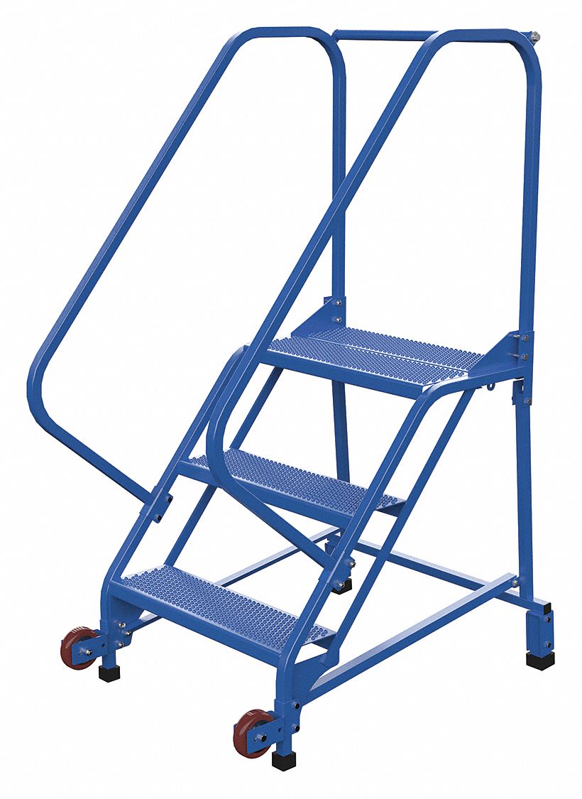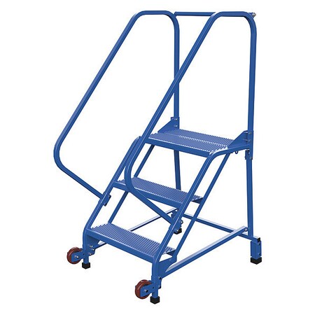Vestil LAD-TRN-50-3-P Tip-N-Roll Ladder, Perforated, 3 Step, 50 Degree, Blue