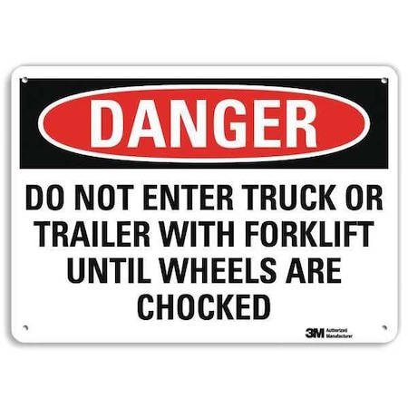 SmartSign U3-1322-RA_14X10 "DANGER DO NOT ENTER TRUCK OR TRAILER WITH FORKLIFT UNTIL WHEELS ARE CHOCKED" Reflective Recycled Aluminum Sign, 14" x 10"