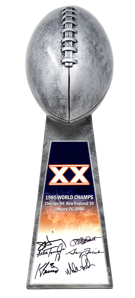 Schwartz Sports Memorabilia BEATRO310 15 in. 1985 Bears Multi Signed Football World Champion Replica Trophy with 6 Signa
