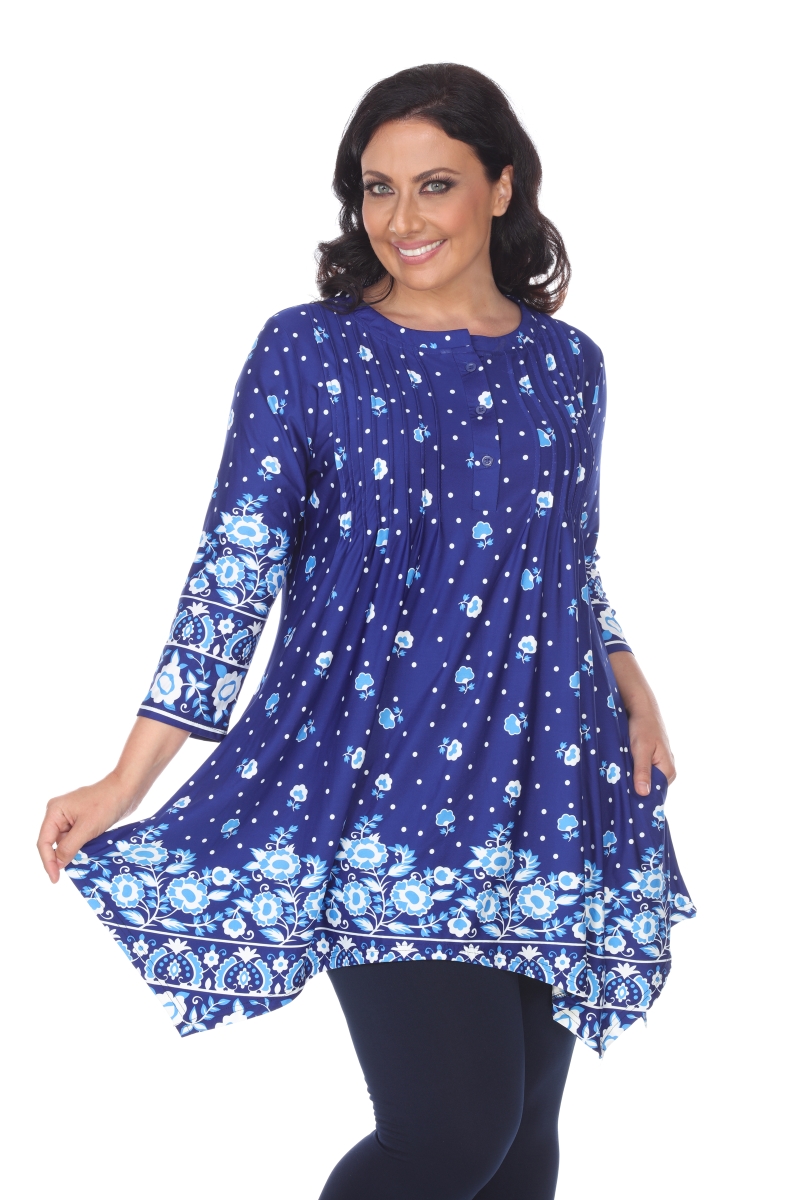 White Mark PS1326-16-3XL Womens Plus Size Vilana Tunic Top, Blue & White - 3XL
