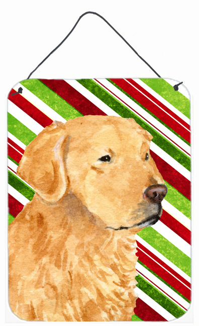 Carolines Treasures SS4545DS1216 12 x 16 in. Golden Retriever Candy Cane Holiday Christmas Aluminium Metal Wall Or Door