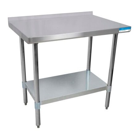 BK Resources 430 Stainless Steel Table, 48 x 18", Galv. Undershelf, 1-1/2" Backsplash, 18 Gauge