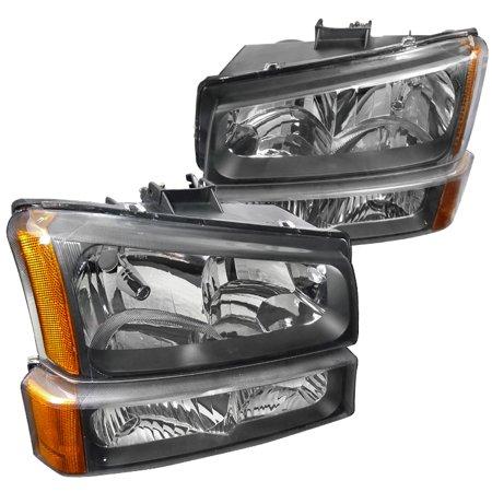 - Features 1 pair of Black housing / Clear lens Headlights + Bumper Lights Kit (4 piece)