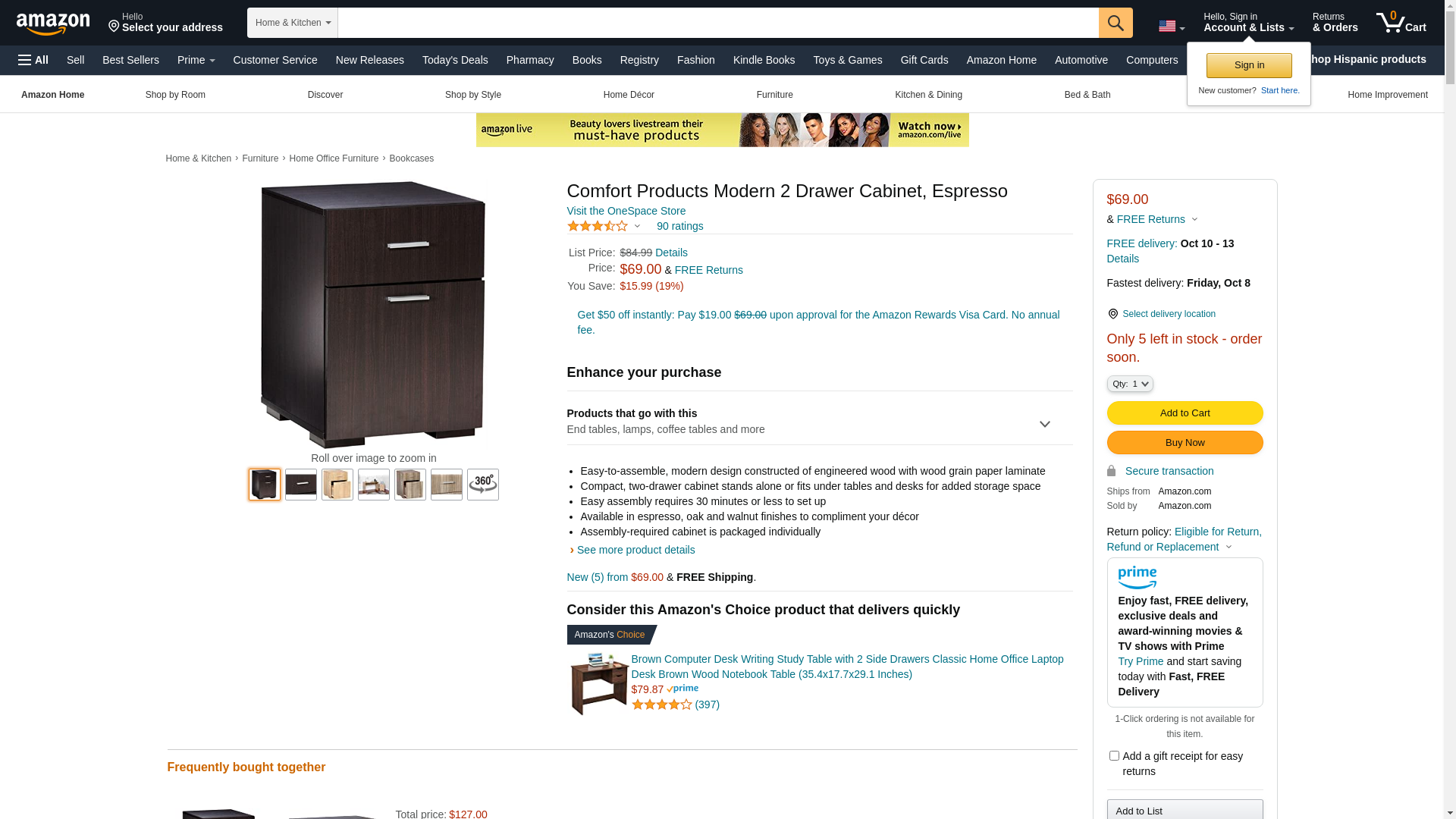 OneSpace Modern 2 Drawer Cabinet, Espresso