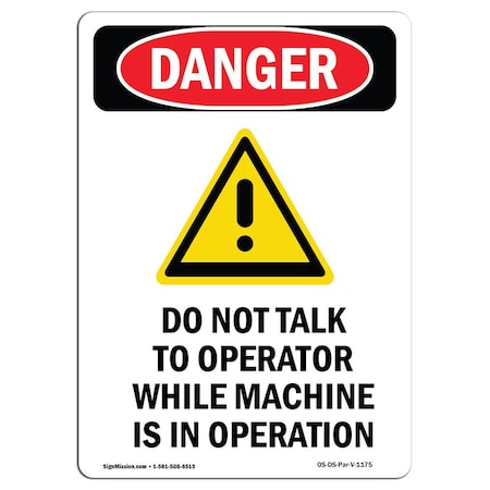 OSHA Danger Sign, Do Not Talk To Operator, 14in X 10in Decal