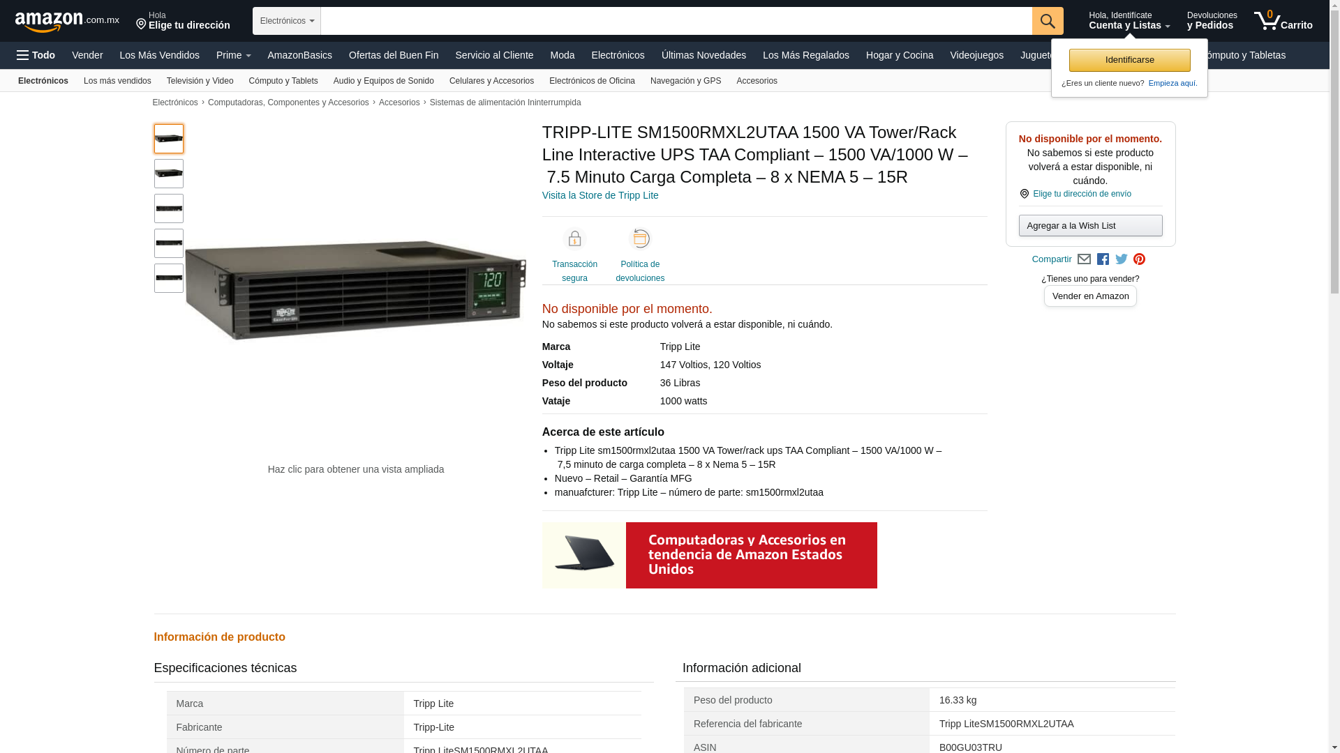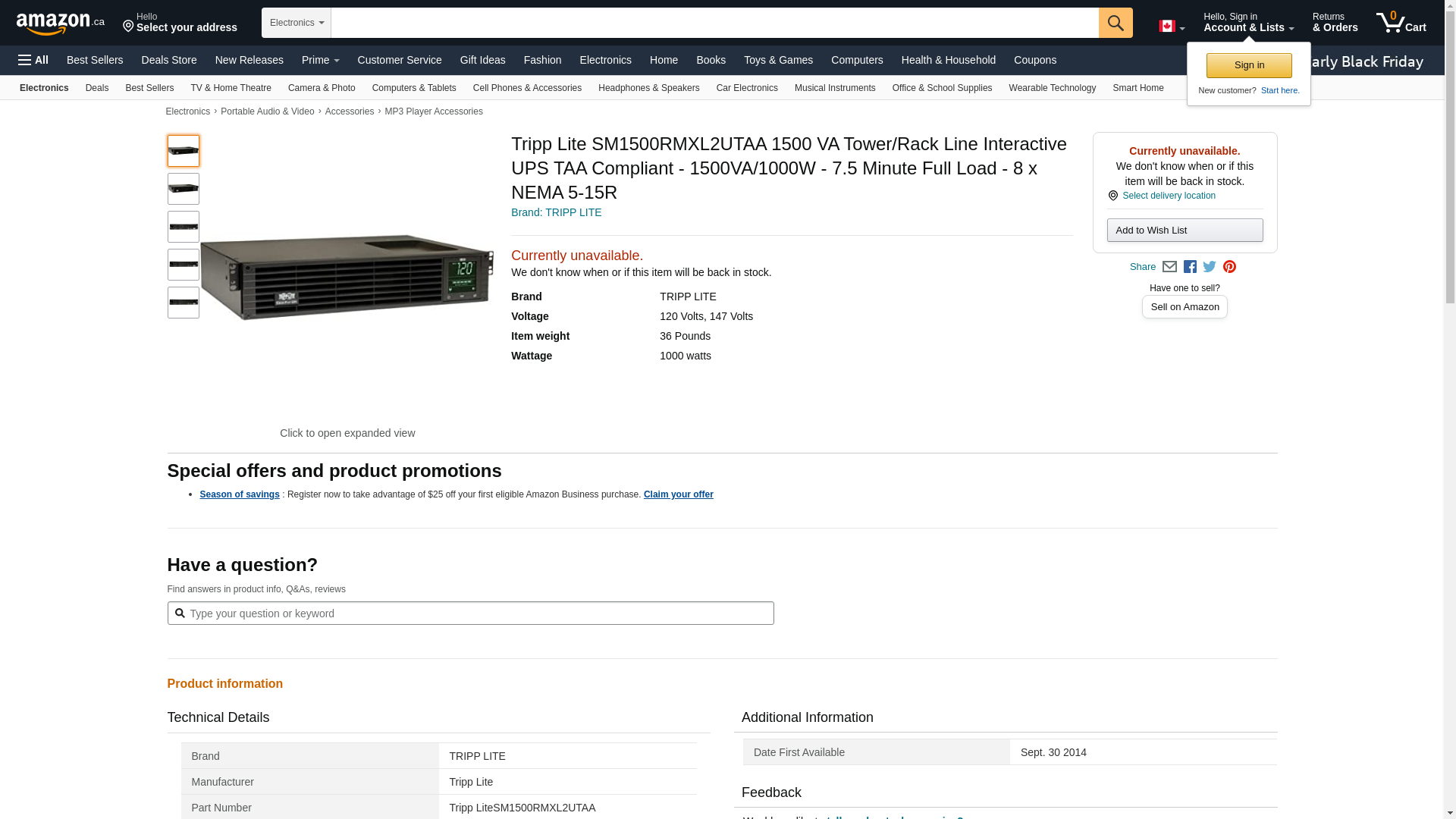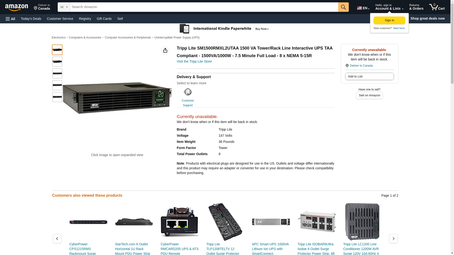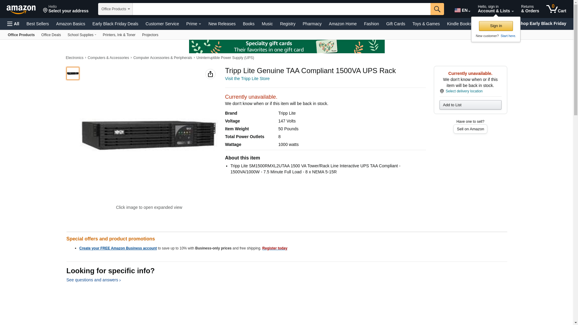 - Tripp Lite SM1500RMXL2UTAA 1500 VA Tower/Rack Line Interactive UPS TAA Compliant - 1500VA/1000W - 7.5 Minute Full Load - 8 x NEMA 5-15R