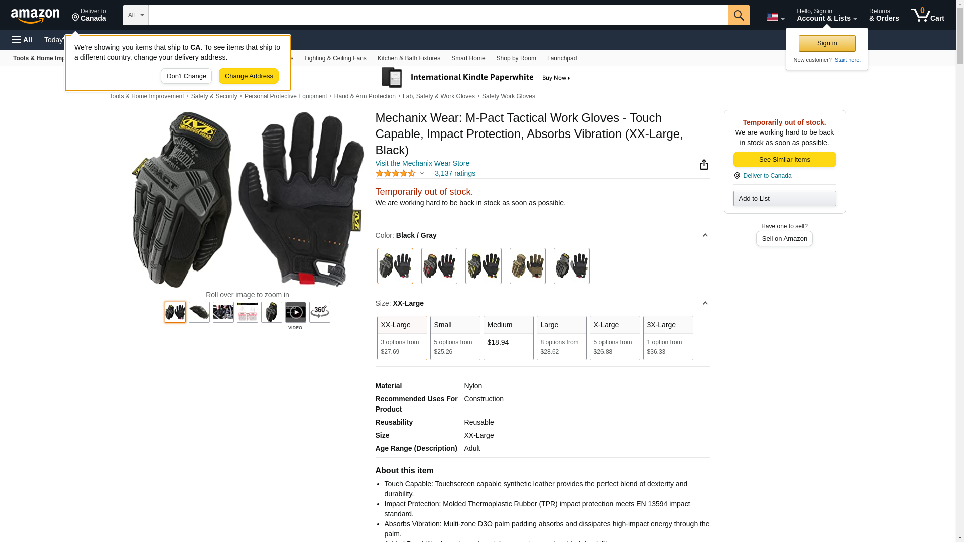 "Mechanix Wear Men's M-Pact Gloves Black/Grey size XXL"