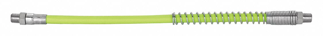 | Feature | <b>Price For:</b> Each <b>Max. Pressure</b>: 8000 psi <b>Min. Burst Pressure</b>: 32, 000 psi <b>Features</b>: Superior Flexibility, 1/8" Inside Diameter <b>Material</b>: Hybrid Polymer <b>Sub-Category</b>: Hose and Rigid Extensions <b>Working Pressure</b>: 8000 psi <b>Item</b>: Grease Gun Hose <b>Size</b>: 12"L <b>For Use With</b>: Manual or Battery Operated Grease Guns <b>Connection</b>: 1/8" MNPT <b>Includes</b>: Spring Guards |