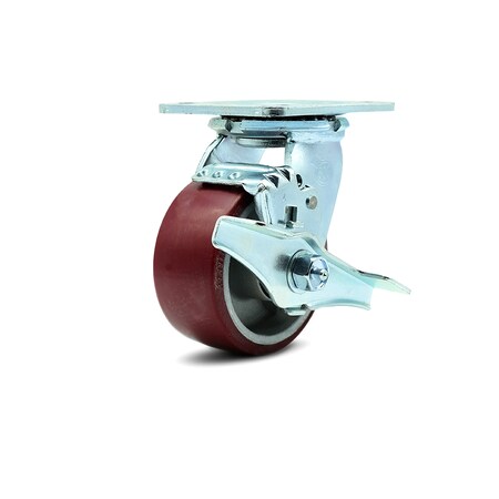 Listing is for one (1) Service Caster Series #30 swivel caster with a 4" diameter by 2" wide maroon polyurethane tread on a silver aluminum core and a top locking brake capable of supporting 700 lbs. per caster. When searching for a reliable and durable solution to your caster needs, rely on Service Caster Series 30 polyurethane aluminum wheel casters. The Series #30 features heavy duty polyurethane wheels that are chemically bonded to an aluminum core, providing a smooth roll over uneven surfaces without marking or marring floors. Finely crafted with a bright zinc plated finish and heat-treated ball bearing raceway, these versatile casters are ideal for a wide range of applications. Use on dollies, platform trucks, warehouse carts and freight terminals, or ensure a smooth and secure ride for food service carts, hotel housekeeping carts, and industrial and commercial equipment. Even drywall carts, welding carts, and wall panel carts will be ready to roll on the Series 30, keeping you moving forward. Service Caster is unsurpassed in quality, reliability, and excellent customer service. Count on us to move you forward.