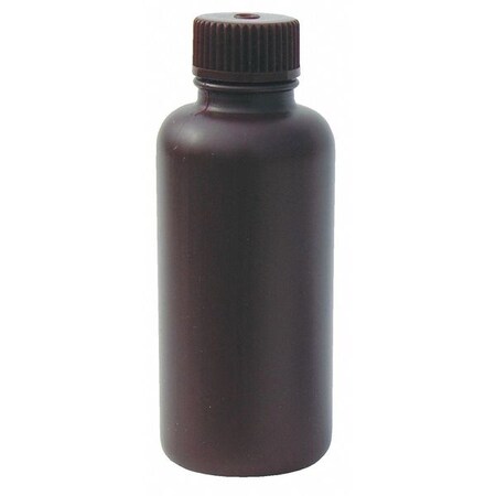 - Narrow mouth amber plastic bottle protects light or UV-sensitive solutions