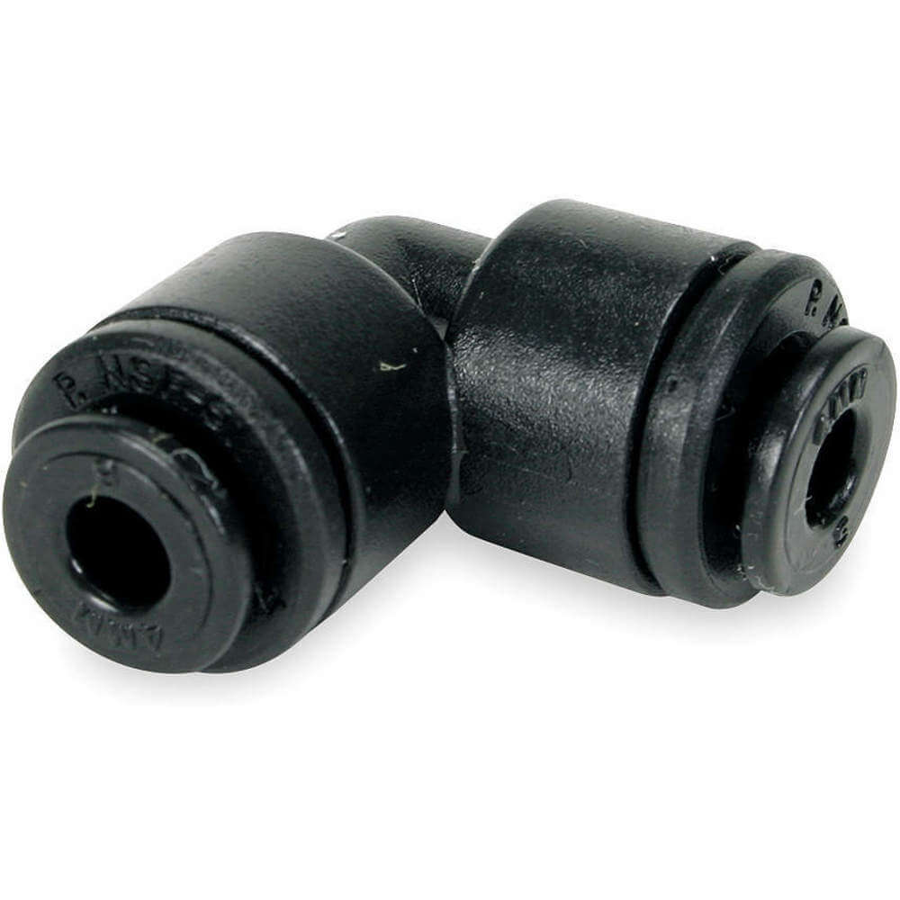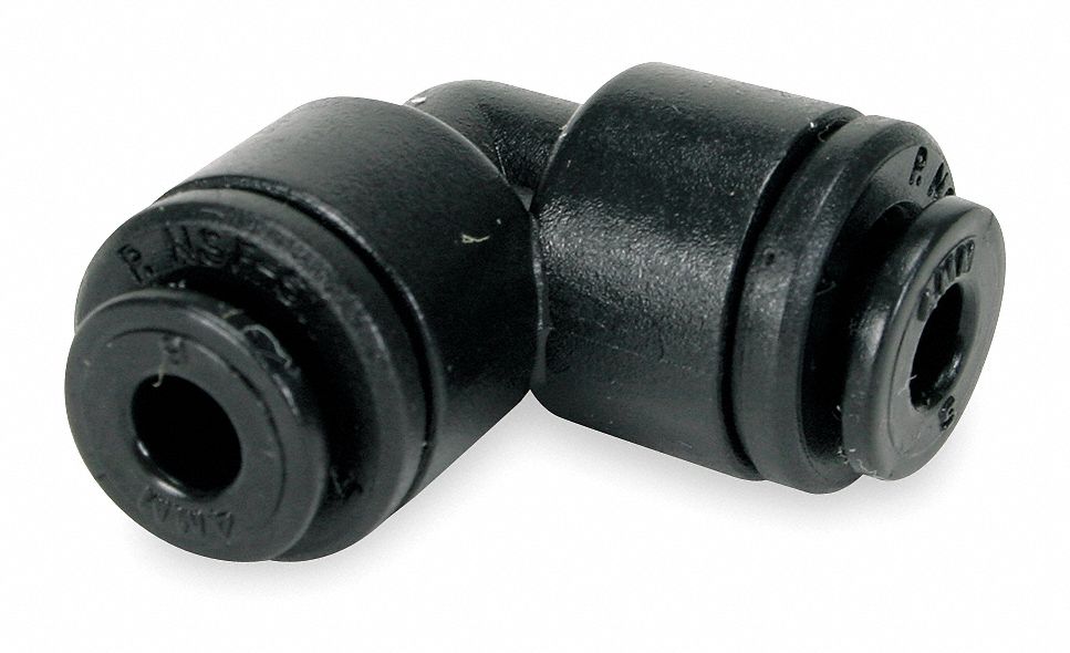 | Feature | Price For: Each Standards: NSF-61 For Drinking Water, NSF-51 For Food And FDA For Food And Beverage Max. Pressure: 150 psi Tube Fitting Material: Acetal Copolymer Fitting Connection Type: Tube Basic Fitting Material: Plastic Color: Black Temp. Range: -14 Degrees to 167 Degrees F for Air and 33 Degrees to 140 Degrees F for Water Item: Union Elbow, 90 Degrees |