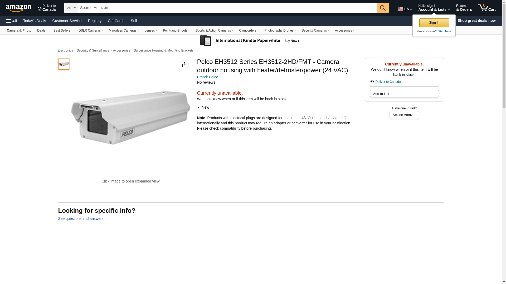 PELCO EH3512-2HD/FMT Enclosure, environmental with EM3512 mount. Small rectangula