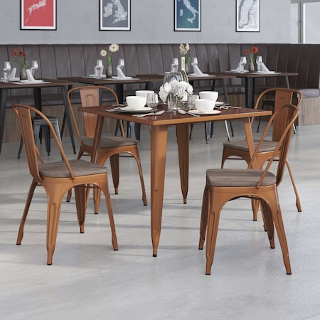 Flash Furniture Blake 4 Pk. Copper Metal Stackable Chair with Wood Seat
