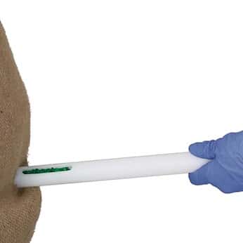 TargetDispo is used to take a target point sample at a position in the sample material that has previously been precisely determined. -HDPE -Clean room manufactured -Optionally sterilised by gamma rays The sampler pierces into the powder or granulate while closed. When it reaches the sample removal point it is opened and thenclosed again. In this way a precise target-point sample is obtained. The sample can simply be emptied through the open handle.