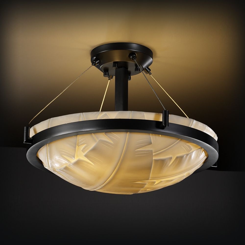 Justice Design Group Porcelina 3-Light Semi-Flush - Matte Black Finish with Banana Leaf Faux Porcelain Resin Shade