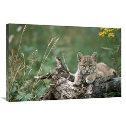 Global Gallery Bobcat Kitten, Resting on a Log in The Summer, Idaho-Canvas Art-36"x24"