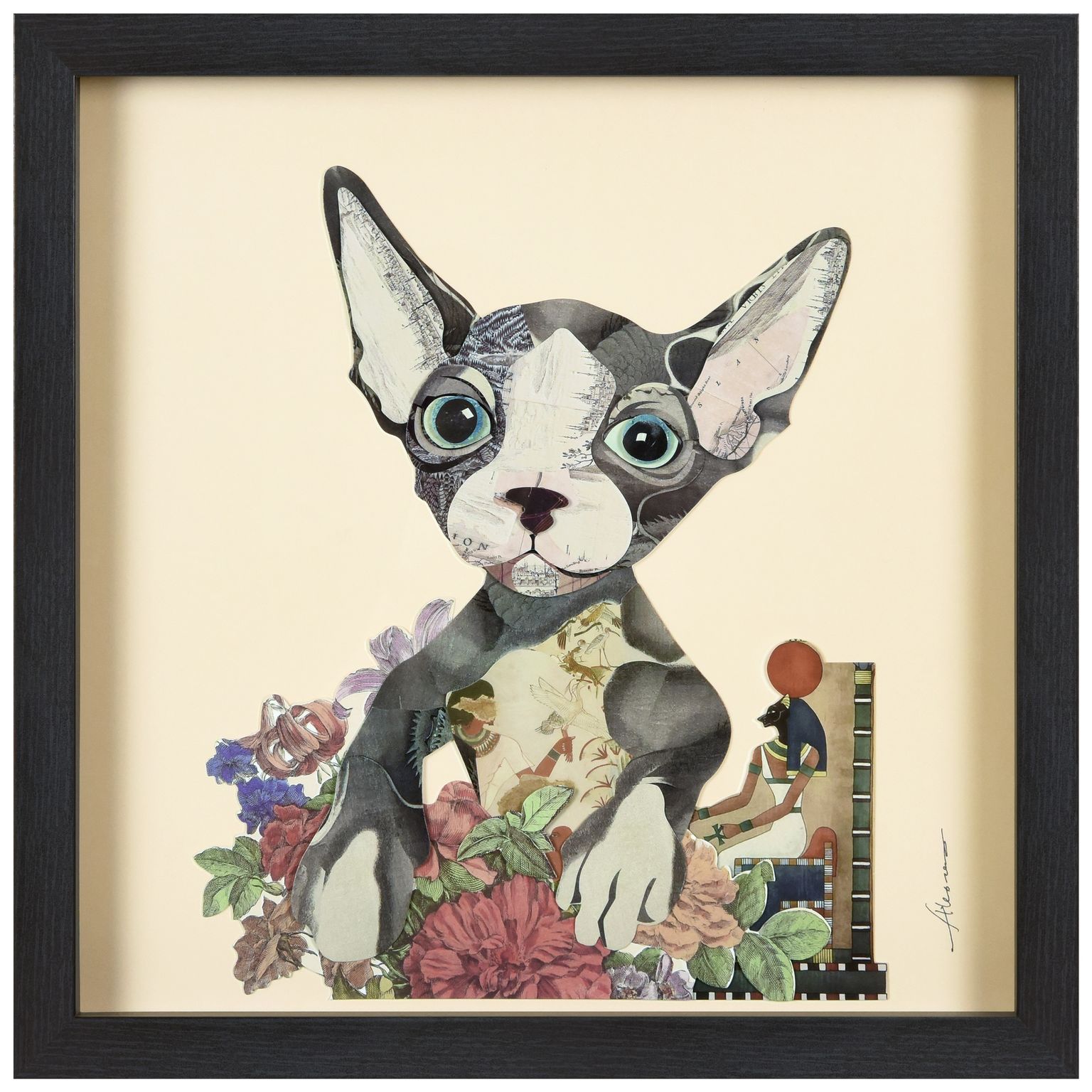 Empire Art Direct Sphynx Dimensional Collage Handmade by Alex Zeng Framed Graphic Cat Wall Art Ready to Hang, 17 in. x 17 in. x 1.4